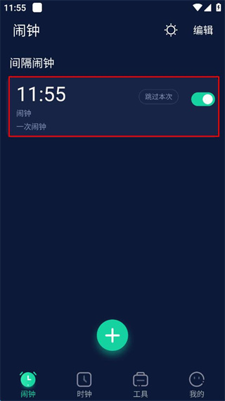 4、返回鬧鐘主界面,可看到已創(chuàng)建的間隔鬧鐘并開啟對應(yīng)的開關(guān)。