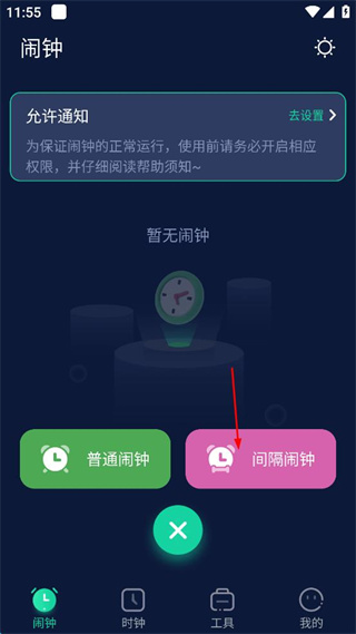 2、在彈出的選項中點擊間隔鬧鐘,進入間隔鬧鐘的設(shè)置頁面。