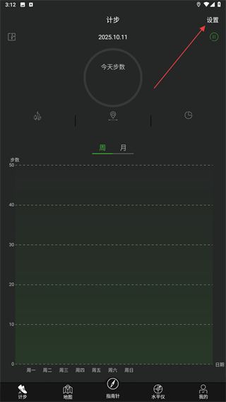 2、進(jìn)入計(jì)步的頁(yè)面內(nèi),點(diǎn)擊右上角設(shè)置的功能按鈕。