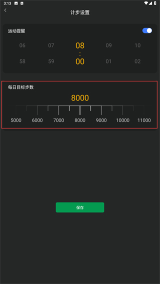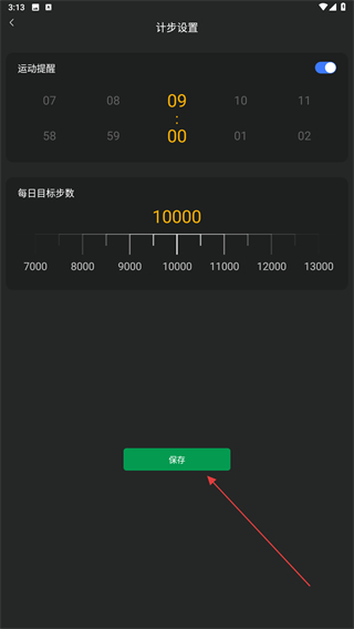 3、進(jìn)入計(jì)步設(shè)置的界面內(nèi),調(diào)整好運(yùn)動(dòng)時(shí)間、目標(biāo)步數(shù)。