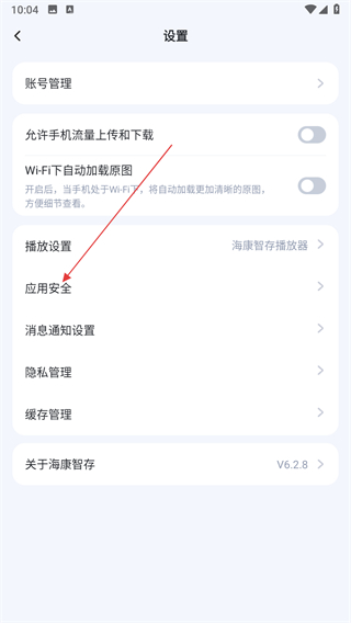 3、在設(shè)置頁面,點擊應(yīng)用安全選項,進入應(yīng)用安全頁面。