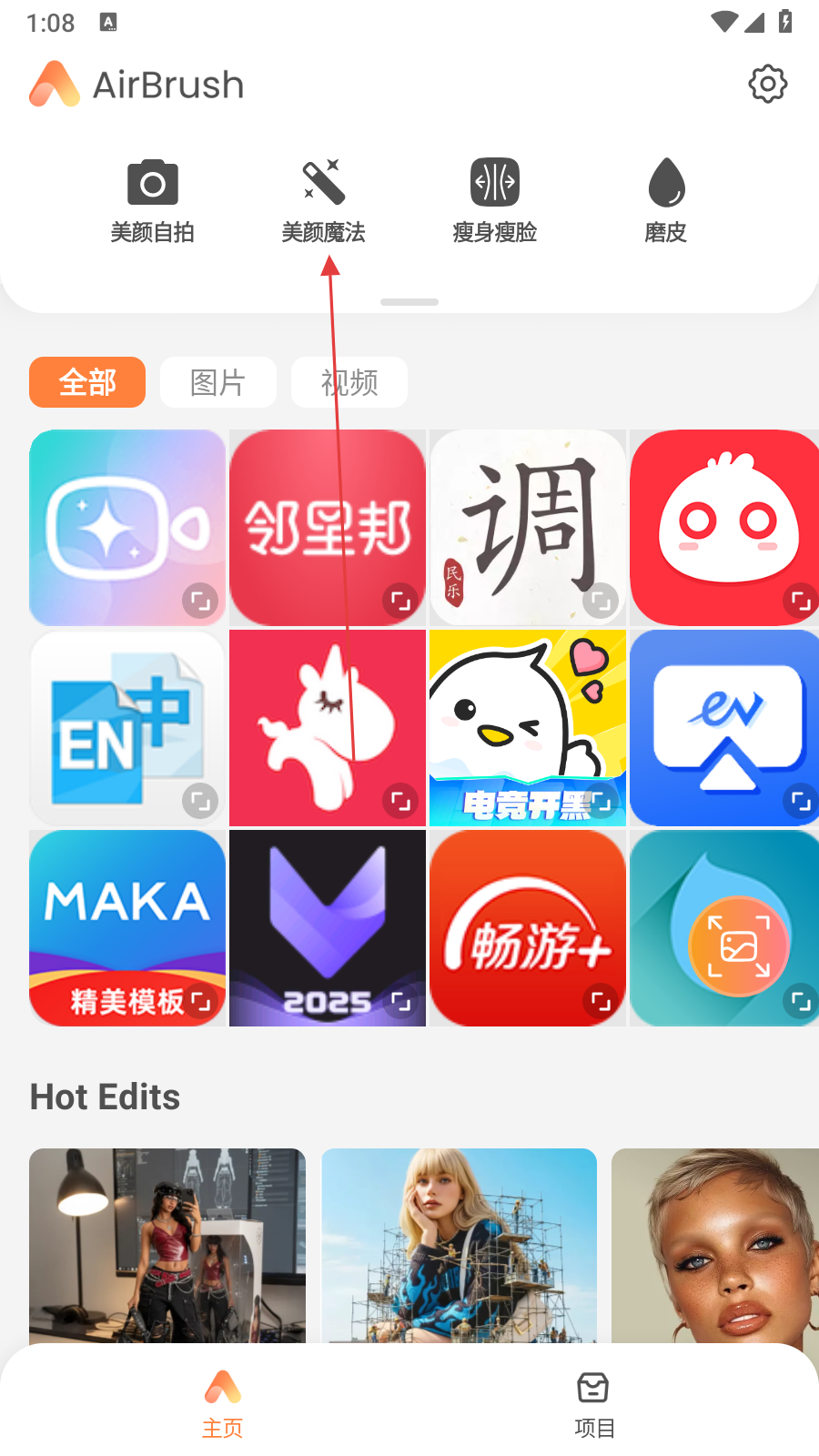 1、打開AirBrush軟件,進入首頁后,可點擊照片美顏。