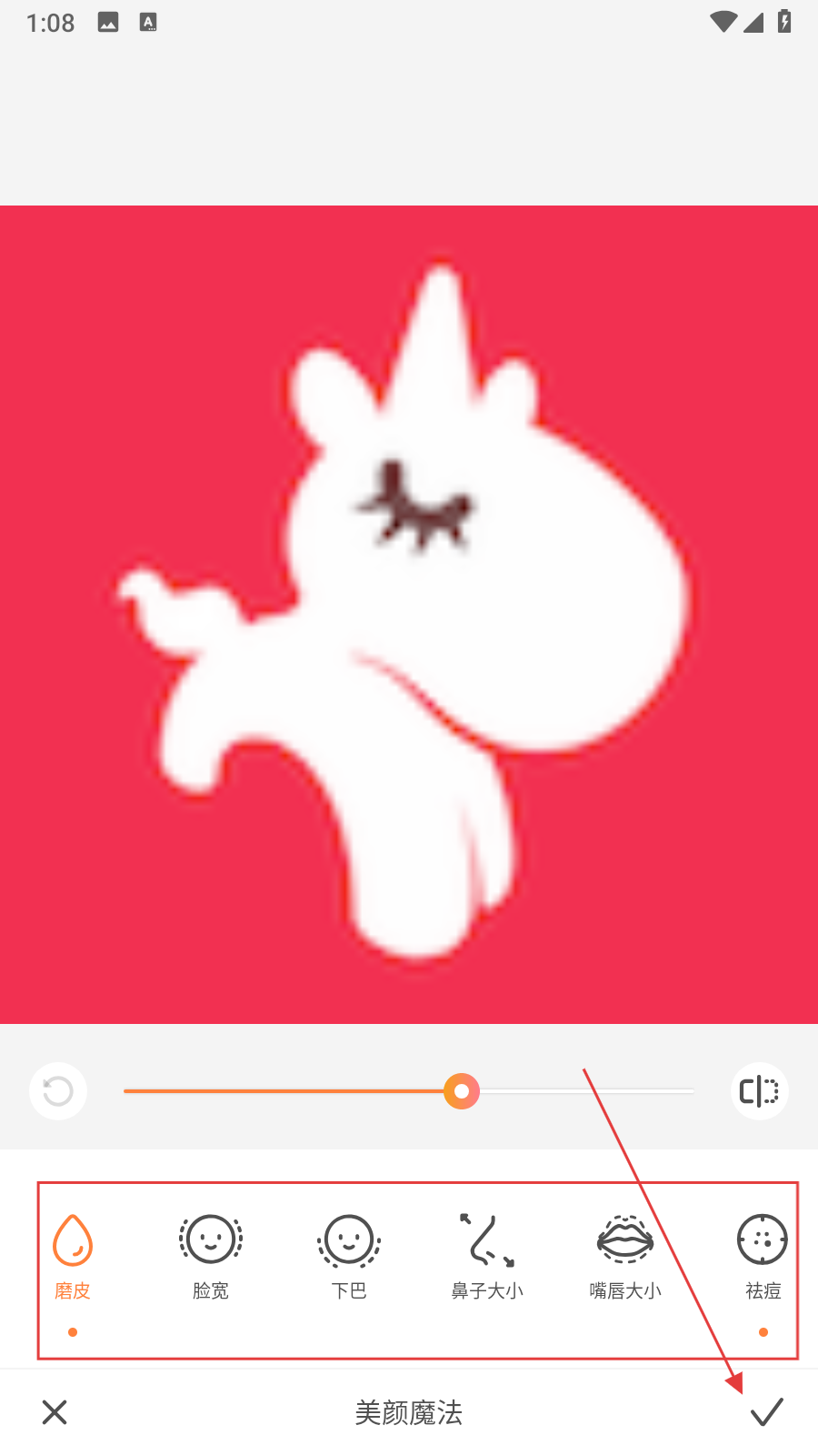 3、圖片導入后,可以對人像進行磨皮等調整,然后點擊右下角的√即可。