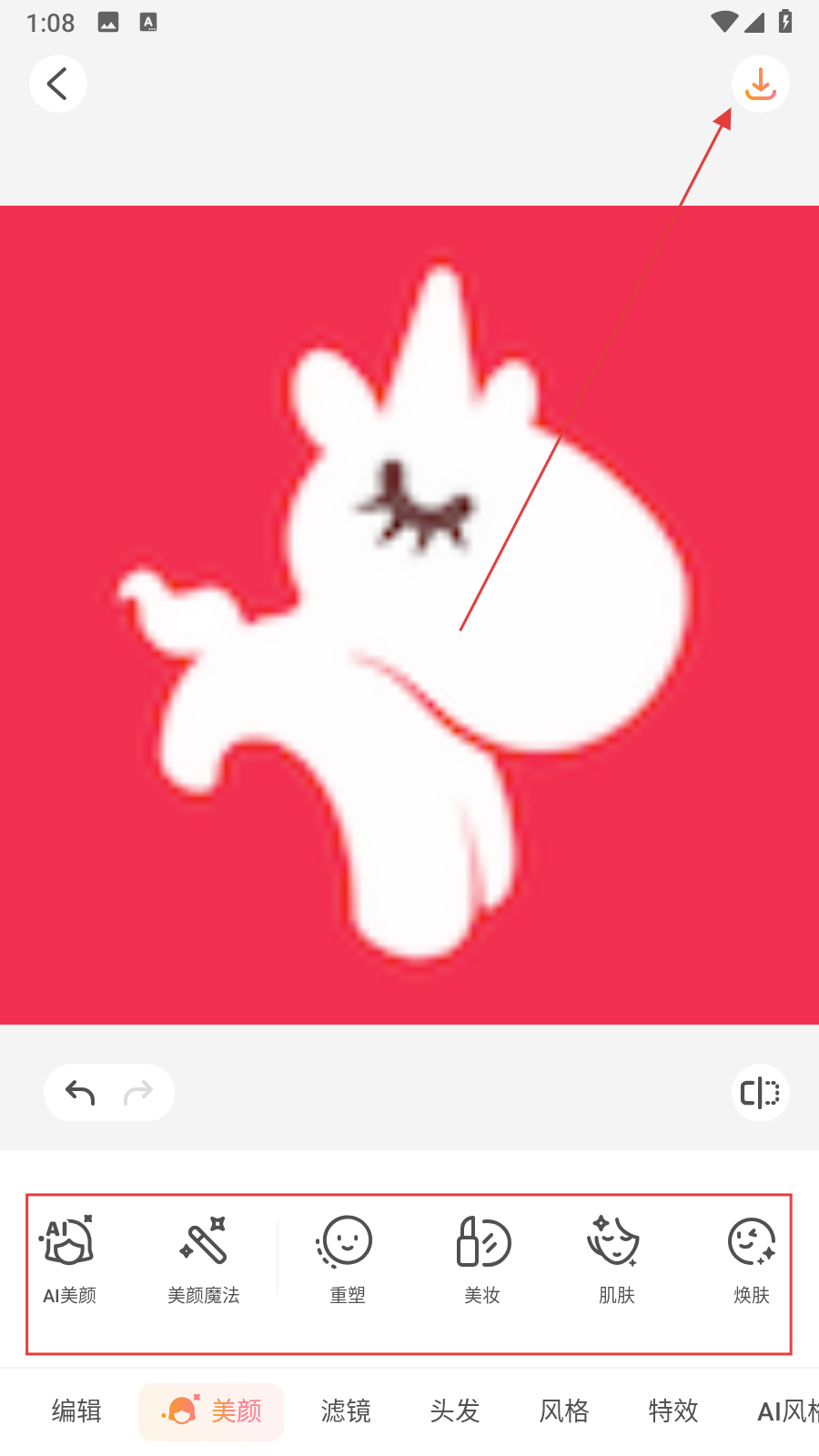 4、編輯完成后,還可根據自己的需求增加濾鏡特效等,最后點擊右上角的保存按鈕。