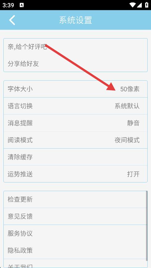 3、在系統(tǒng)設(shè)置頁面里,找到字體大小選項,點擊進入。