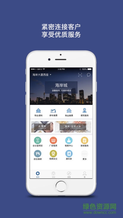海岸馨服務(wù)是一款專為海岸園區(qū)打造的智慧生活平臺,園區(qū)服務(wù)購物訂餐周邊吃喝玩樂優(yōu)惠享不停,社區(qū)互動交流輕松生活??靵砭G色資源網(wǎng)下載體驗吧!