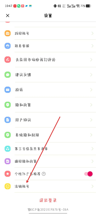 2、點(diǎn)擊注銷賬號選項(xiàng),進(jìn)入賬號注銷頁面。