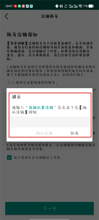 4、輸入我確認(rèn)要注銷,點(diǎn)擊確認(rèn)注銷按鈕。