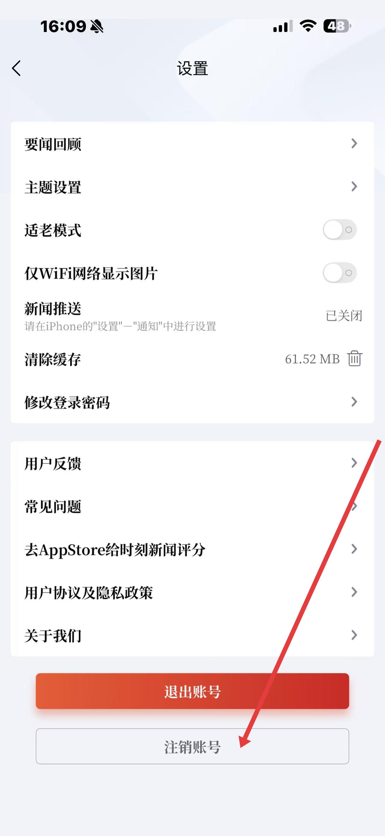 3、在設(shè)置頁面下滑,找到并點(diǎn)擊注銷賬號選項(xiàng)。