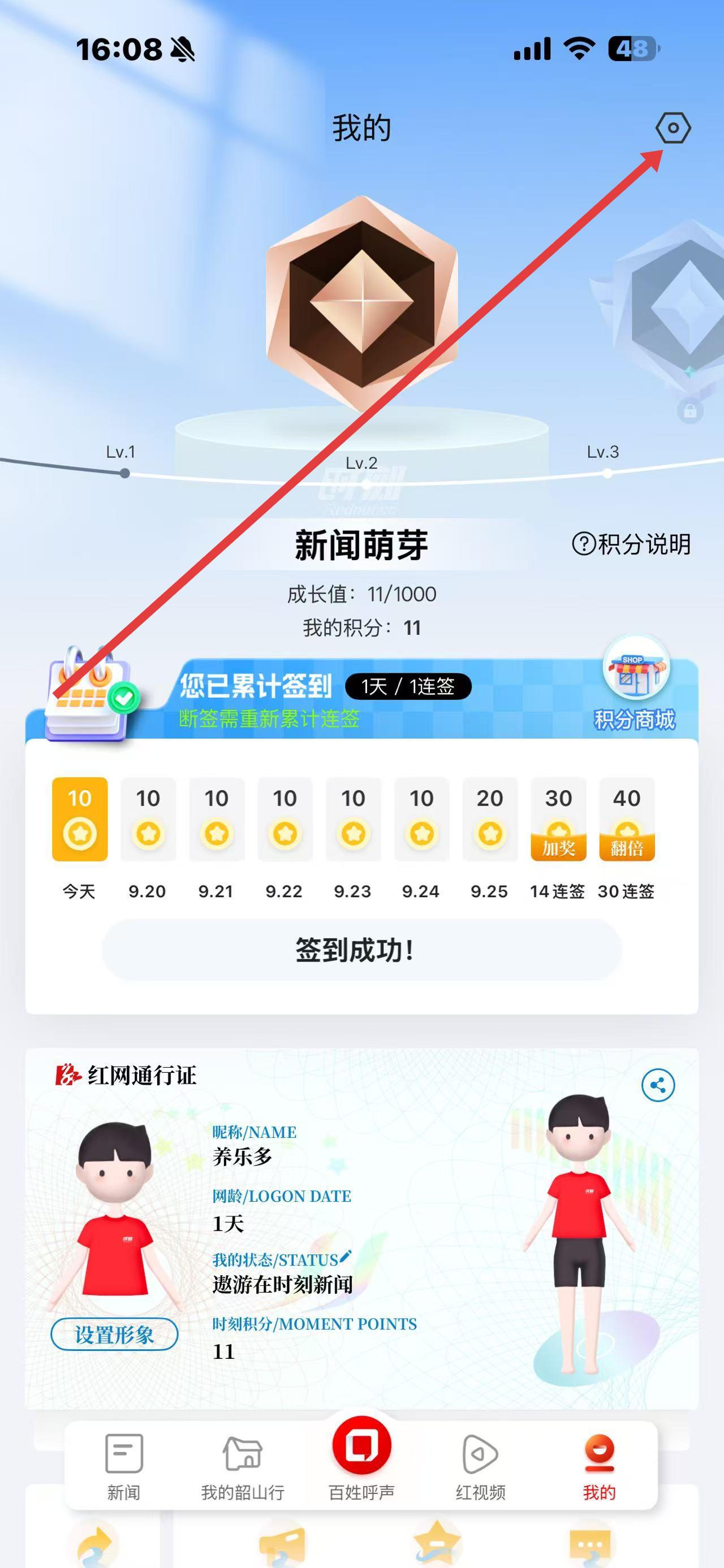 1、打開時刻新聞App,點(diǎn)擊底部導(dǎo)航欄中的我的進(jìn)入個人頁面。