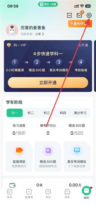 1、打開駕校一點(diǎn)通app,選擇并點(diǎn)擊底部導(dǎo)航欄的我的選項(xiàng)。