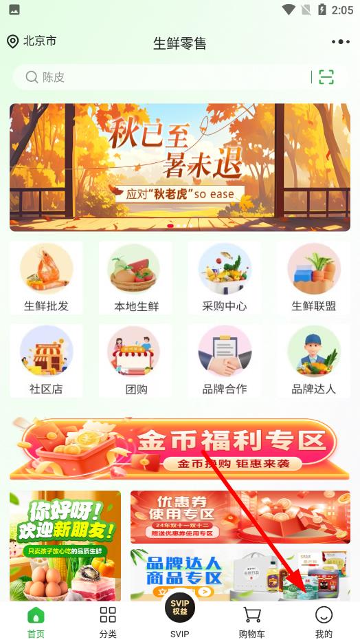 1、打開奇麟鮮品APP進(jìn)入首頁(yè)界面,點(diǎn)擊底部導(dǎo)航欄最右側(cè)的我的選項(xiàng)。