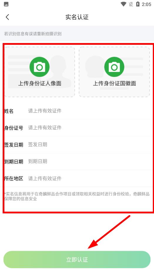 3、在實(shí)名認(rèn)證界面,分別上傳身份證人像面和身份證國(guó)徽面,系統(tǒng)會(huì)自動(dòng)識(shí)別姓名、身份證號(hào)等信息,確認(rèn)信息無(wú)誤后點(diǎn)擊立即認(rèn)證按鈕完成實(shí)名認(rèn)證。