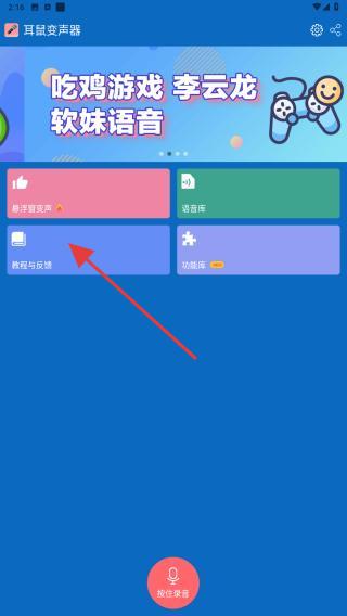 1、打開萬能變聲器APP進(jìn)入到首頁內(nèi),點(diǎn)擊教程與反饋的功能按鈕。