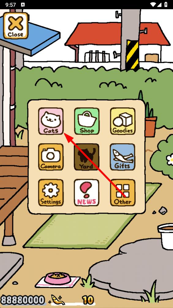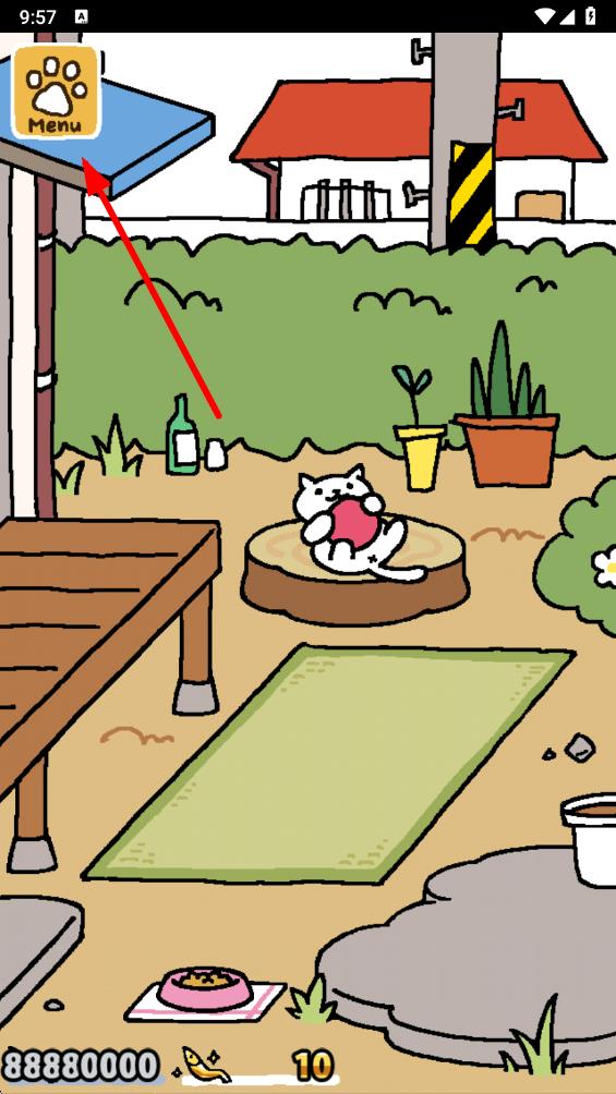 1、打開貓咪后院游戲,點擊游戲界面左上角帶有Menu字樣的圖標,打開菜單。