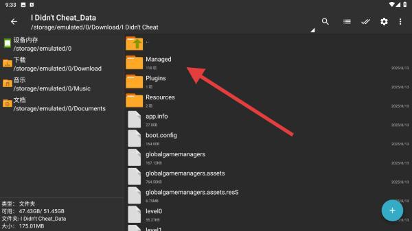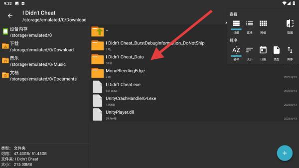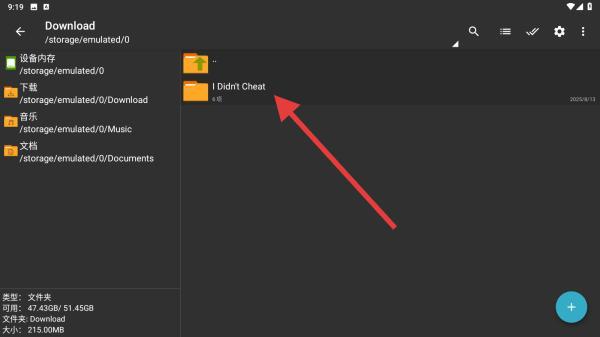 2、在Download文件夾的右側(cè)文件列表中,查找命名為IDidn'tCheat的文件夾,單擊進(jìn)入該二級(jí)目錄;進(jìn)入后,繼續(xù)在目錄內(nèi)瀏覽。