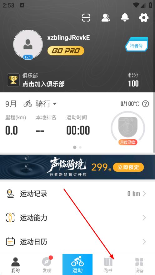1、打開行者APP,點擊底部導(dǎo)航欄中的路書。