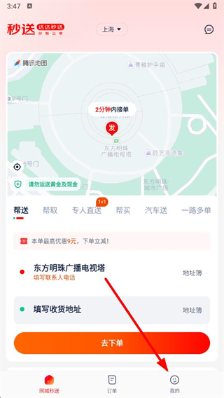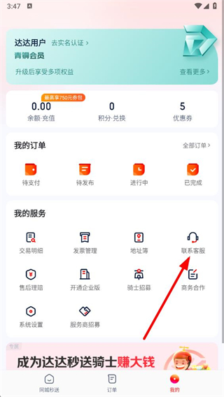 1、打開達達秒送app,點擊右下角我的選項,進入個人頁面。