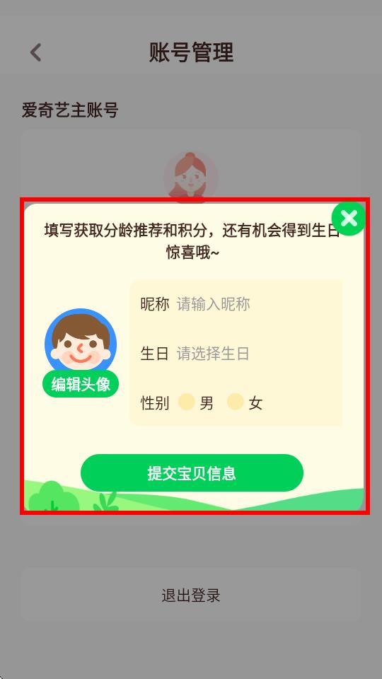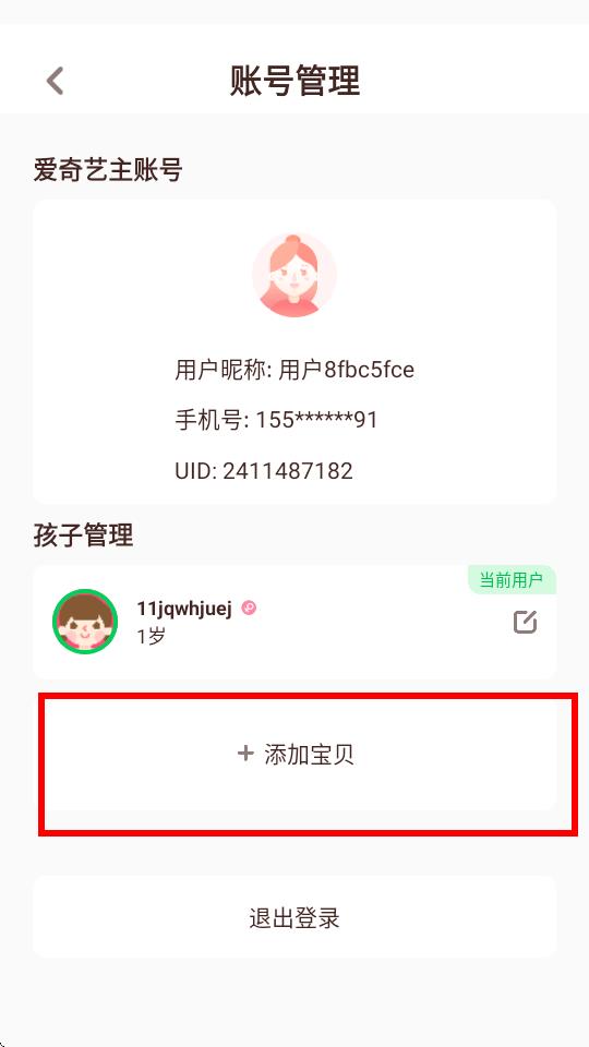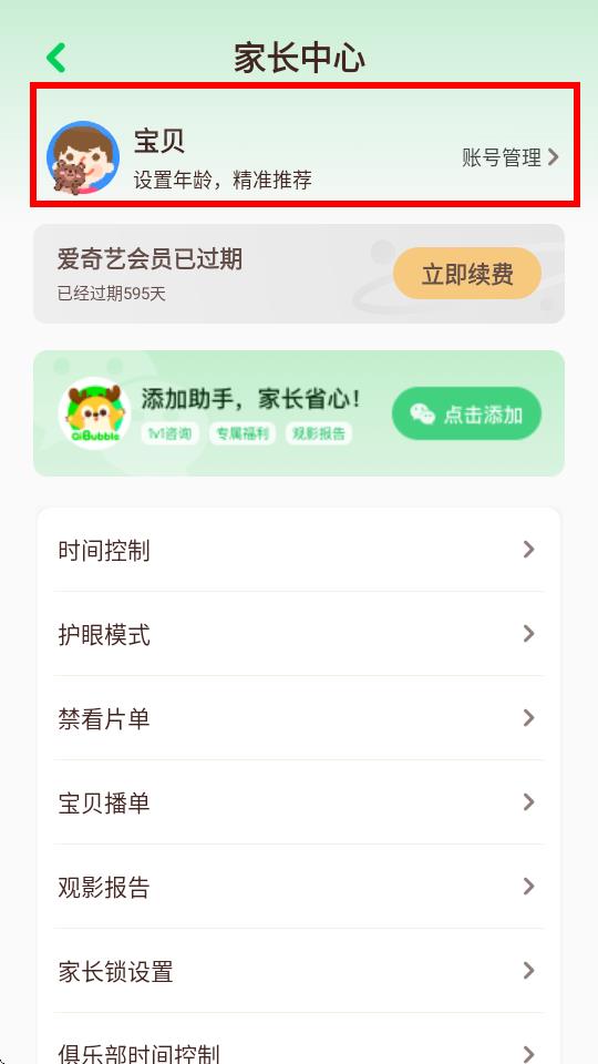 1、打開愛奇藝奇巴布App,進(jìn)入家長(zhǎng)中心界面,點(diǎn)擊賬號(hào)管理選項(xiàng)。