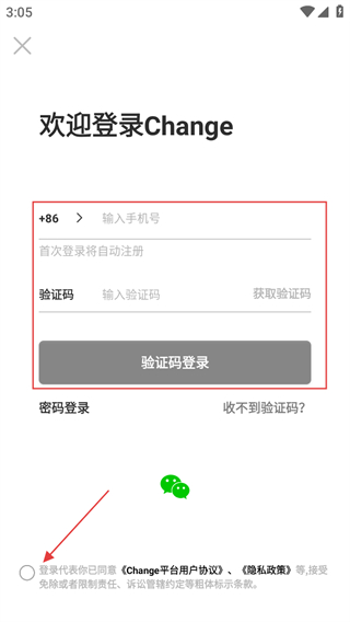 3、勾選,輸入手機號和驗證碼,自動完成注冊。