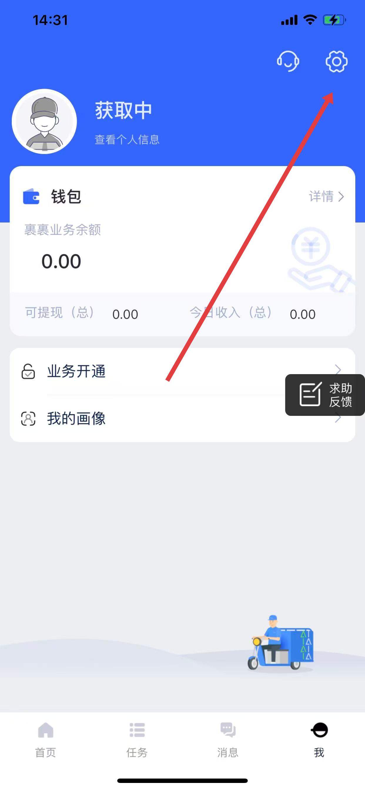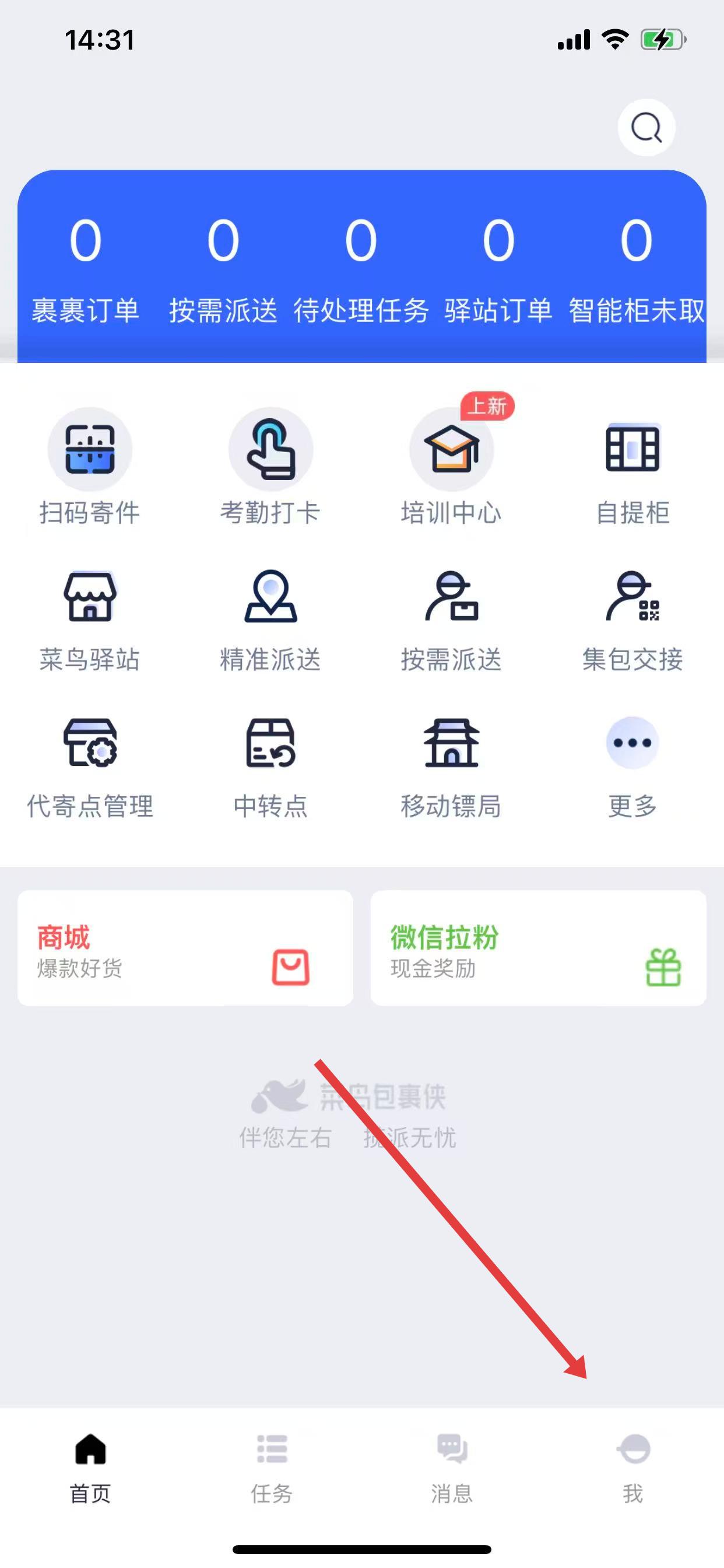 1、打開包裹俠應用,點擊底部導航欄中的我,進入個人頁面。
