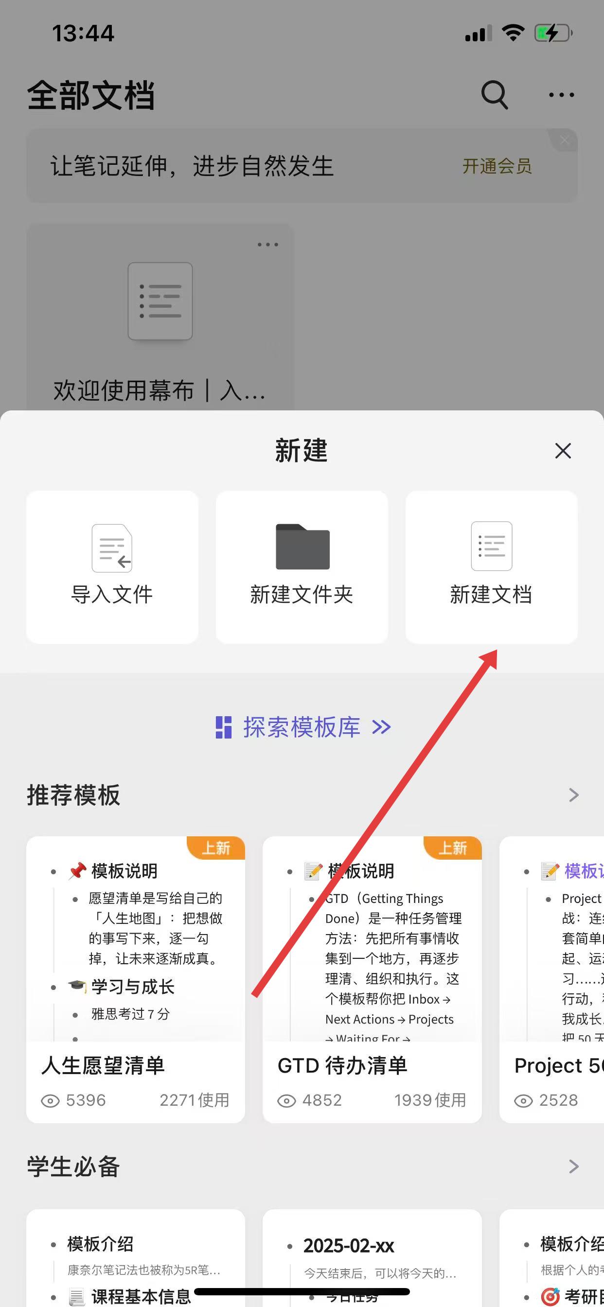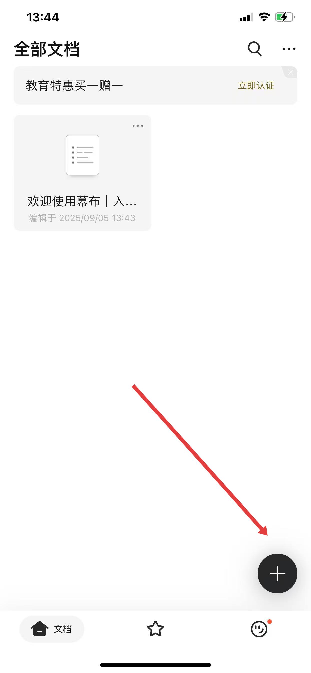 1、打開幕布App,進(jìn)入全部文檔頁面,點(diǎn)擊右下角的+號按鈕。