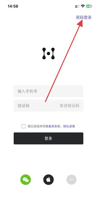 1、打開幕布app,找到并點(diǎn)擊右上角的密碼登錄選項(xiàng)。