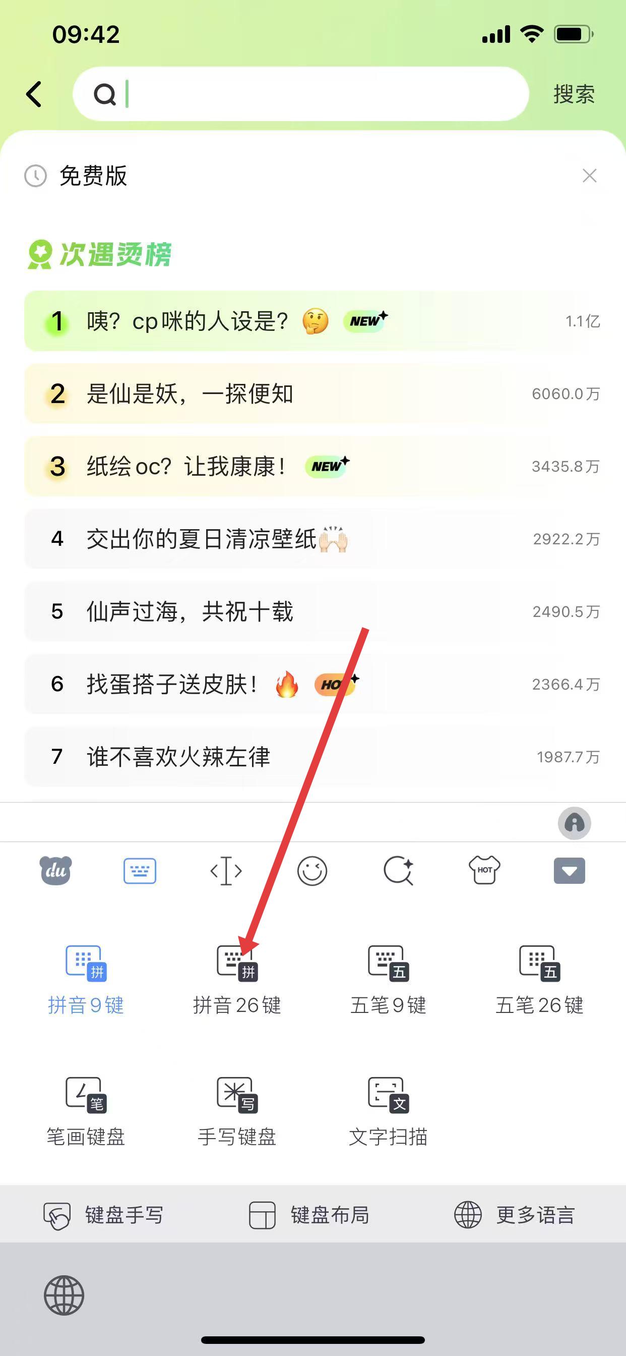 3、點(diǎn)擊后,百度輸入法鍵盤界面自動(dòng)切換為26鍵輸入模式,完成設(shè)置。
