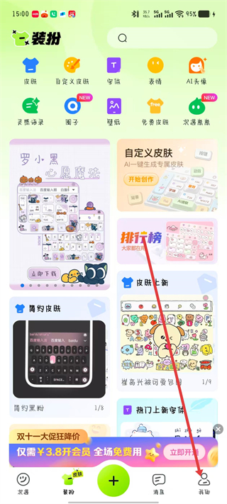 1、打開百度輸入法APP,點(diǎn)擊我的選項(xiàng)。