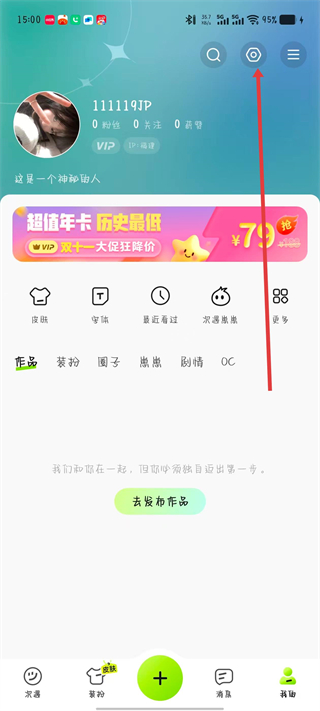 2、在我的頁面,點(diǎn)擊右上角的設(shè)置圖標(biāo)。