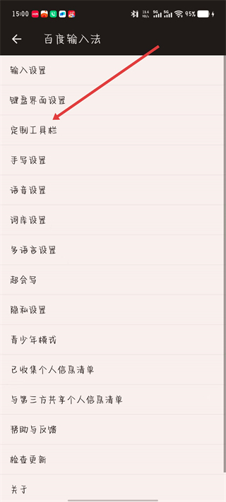 3、在設(shè)置頁面,點(diǎn)擊定制工具欄選項(xiàng)。