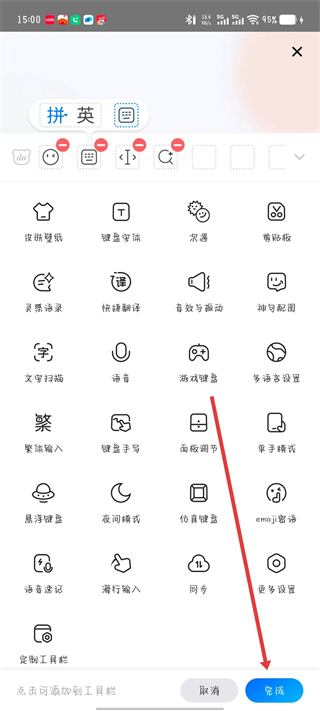 4、點(diǎn)擊添加或刪除圖標(biāo),完成后點(diǎn)擊完成。