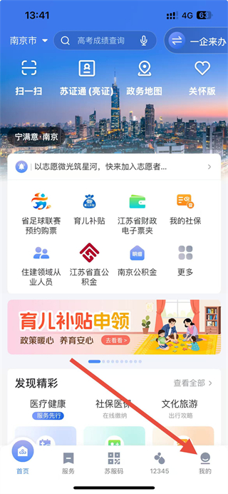 1、在蘇服辦app首頁點(diǎn)擊我的選項(xiàng),進(jìn)入個(gè)人頁面。