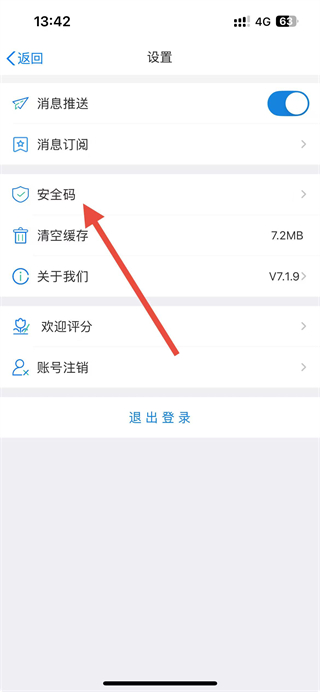 3、在設(shè)置頁面點(diǎn)擊安全碼選項(xiàng),進(jìn)入安全碼設(shè)置頁面。