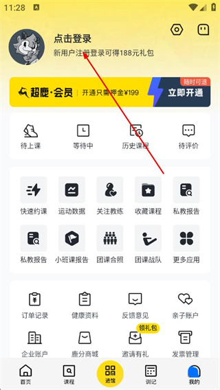 1、打開超鹿運(yùn)動(dòng)APP,點(diǎn)擊底部導(dǎo)航欄的我的選項(xiàng),進(jìn)入個(gè)人頁面后點(diǎn)擊點(diǎn)擊登錄。