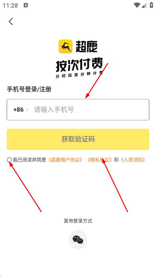 3、勾選我已閱讀并同意超鹿用戶協(xié)議、隱私協(xié)議和入場須知。