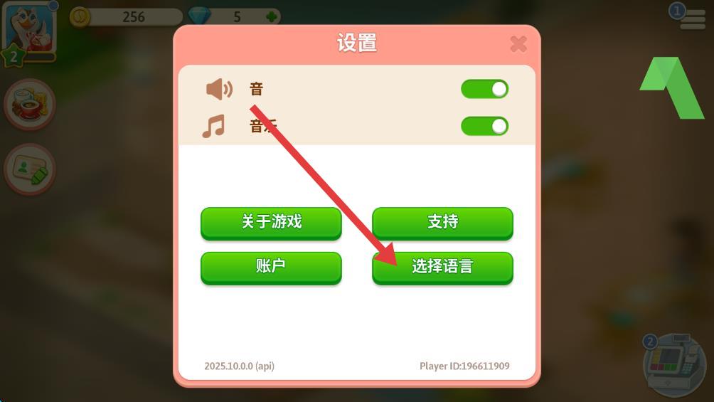 3、在設(shè)置界面里,找到并點(diǎn)擊選擇語言選項(xiàng),打開語言選擇彈窗。