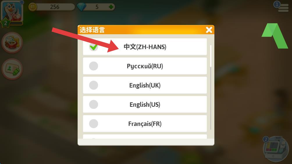 4、在語言選擇彈窗的列表中,找到中文并點(diǎn)擊,即可切換為中文模式。