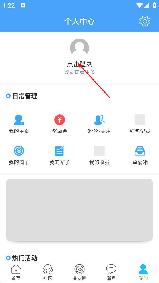 3、在個(gè)人中心頁面上方看到“點(diǎn)擊登錄”提示,點(diǎn)擊“點(diǎn)擊登錄”,進(jìn)入賬號密碼登錄界面。