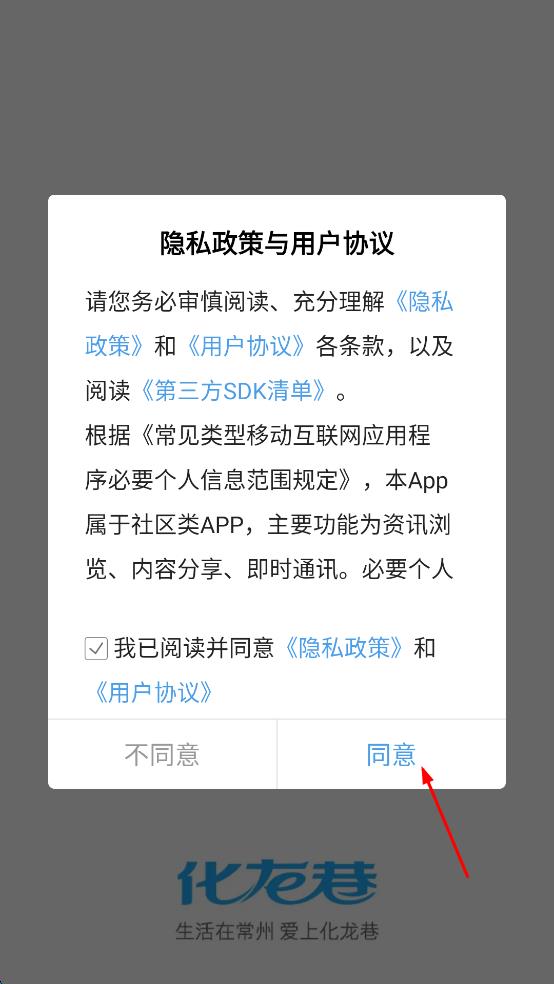 1、打開化龍巷,彈出隱私政策與用戶協(xié)議提示,點(diǎn)擊同意,進(jìn)入軟件首頁。