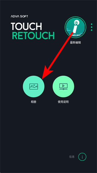 1.打開Retouch應(yīng)用,點(diǎn)擊相冊(cè)按鈕,選擇需要編輯的圖片。