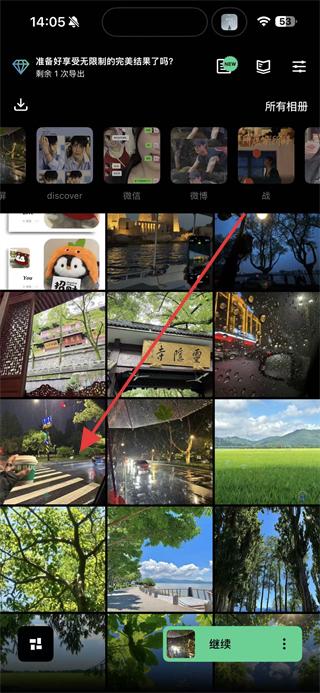 1、打開TouchRetouch應(yīng)用,在相冊(cè)中選擇需要編輯的圖片,點(diǎn)擊繼續(xù)進(jìn)入編輯頁面。