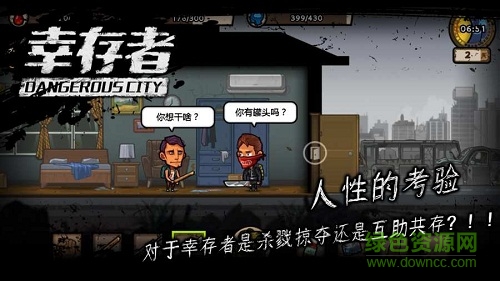 幸存者危城手游4399版是一款生存類動作冒險僵尸游戲,游戲考驗玩家的人性選擇,是殺戮掠奪還是互助共存,結局隨機性,歡迎到綠色資源網(wǎng)下載玩耍!