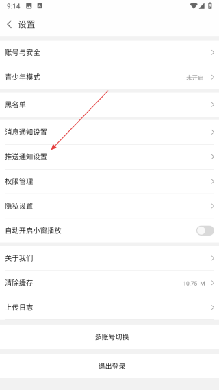 3、在設(shè)置界面中,點(diǎn)擊推送通知設(shè)置選項,進(jìn)入推送通知設(shè)置頁面。