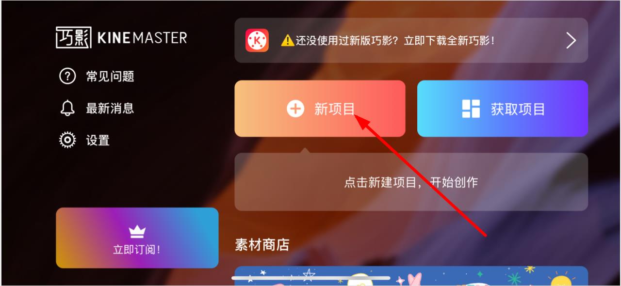 1、打開(kāi)巧影軟件,在主界面點(diǎn)擊新項(xiàng)目按鈕,進(jìn)入新項(xiàng)目創(chuàng)建界面。