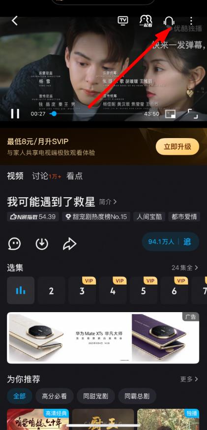 1、打開優(yōu)酷app,選擇想要觀看的劇集,如我可能遇到了救星。