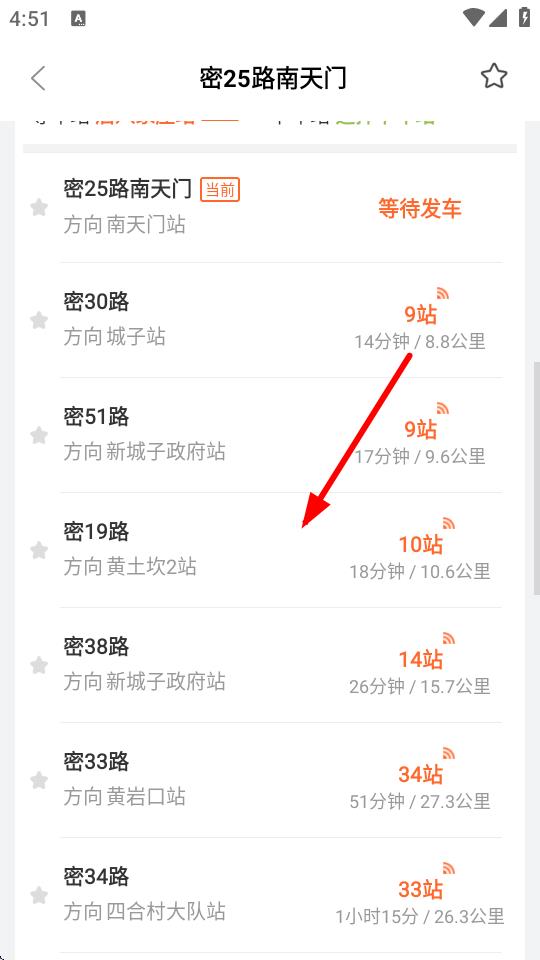 2、在搜索框輸入目標(biāo)公交線路名稱,如密25路南天門。