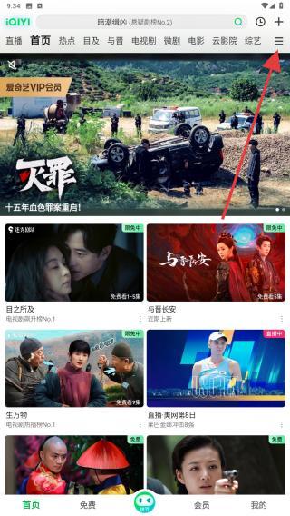 1、進(jìn)入愛(ài)奇藝APP的首頁(yè)內(nèi),點(diǎn)擊右上角的三橫線的圖標(biāo)即可展開(kāi)導(dǎo)航欄。