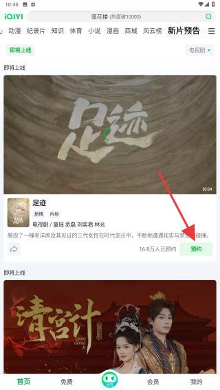 3、在新片預(yù)告頁(yè)面,將分類跳轉(zhuǎn)至電視劇,找到你想預(yù)約的并點(diǎn)擊其右側(cè)預(yù)約的按鈕即可。