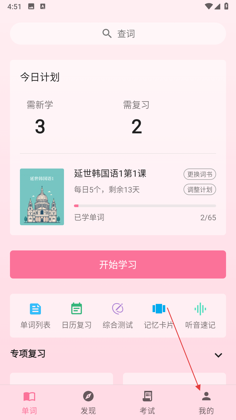 1、打開韓語學(xué)習(xí)君APP,點(diǎn)擊底部導(dǎo)航欄最右側(cè)的我的,進(jìn)入個(gè)人中心頁面。